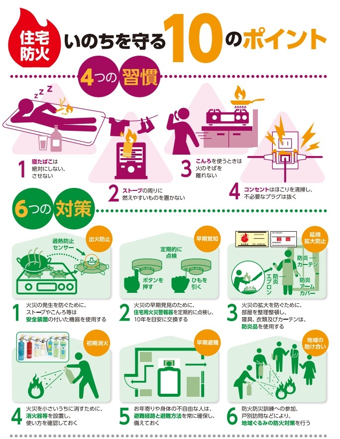 この運動を機会に、職場やご家庭の防火対策について見直していただき、大切な命、財産を恐ろしい火災から守りましょう!