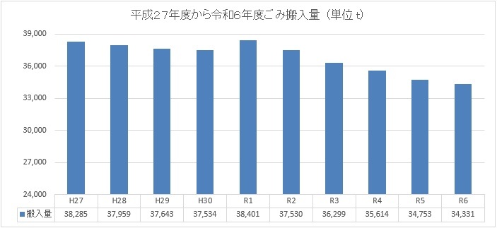 平成27年度から令和6年度ごみ搬入量(単位t)